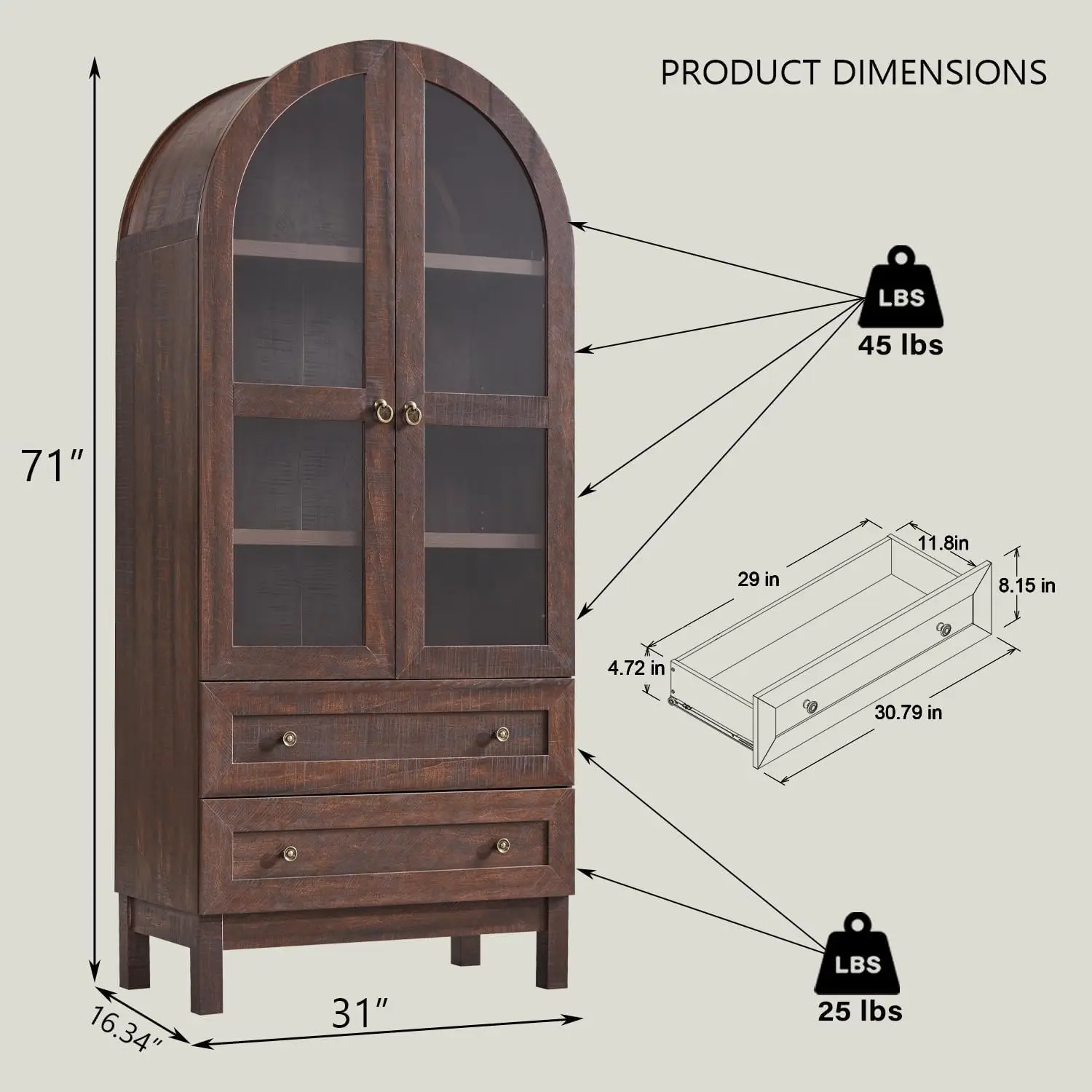 Product Dimensions: 16.34"D x 31"W x 71"H