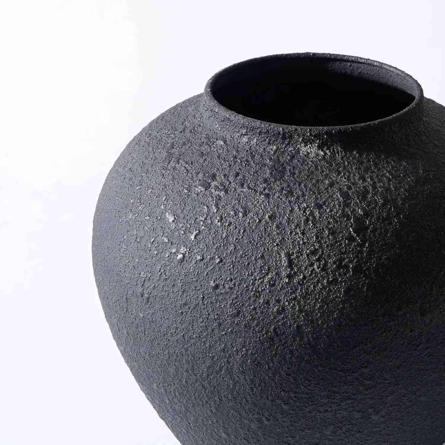 Large Black Round Vase with Pottery Look for Home Decor, Rustic Modern Farmhouse Centerpiece, Earthy Textured Table Decor